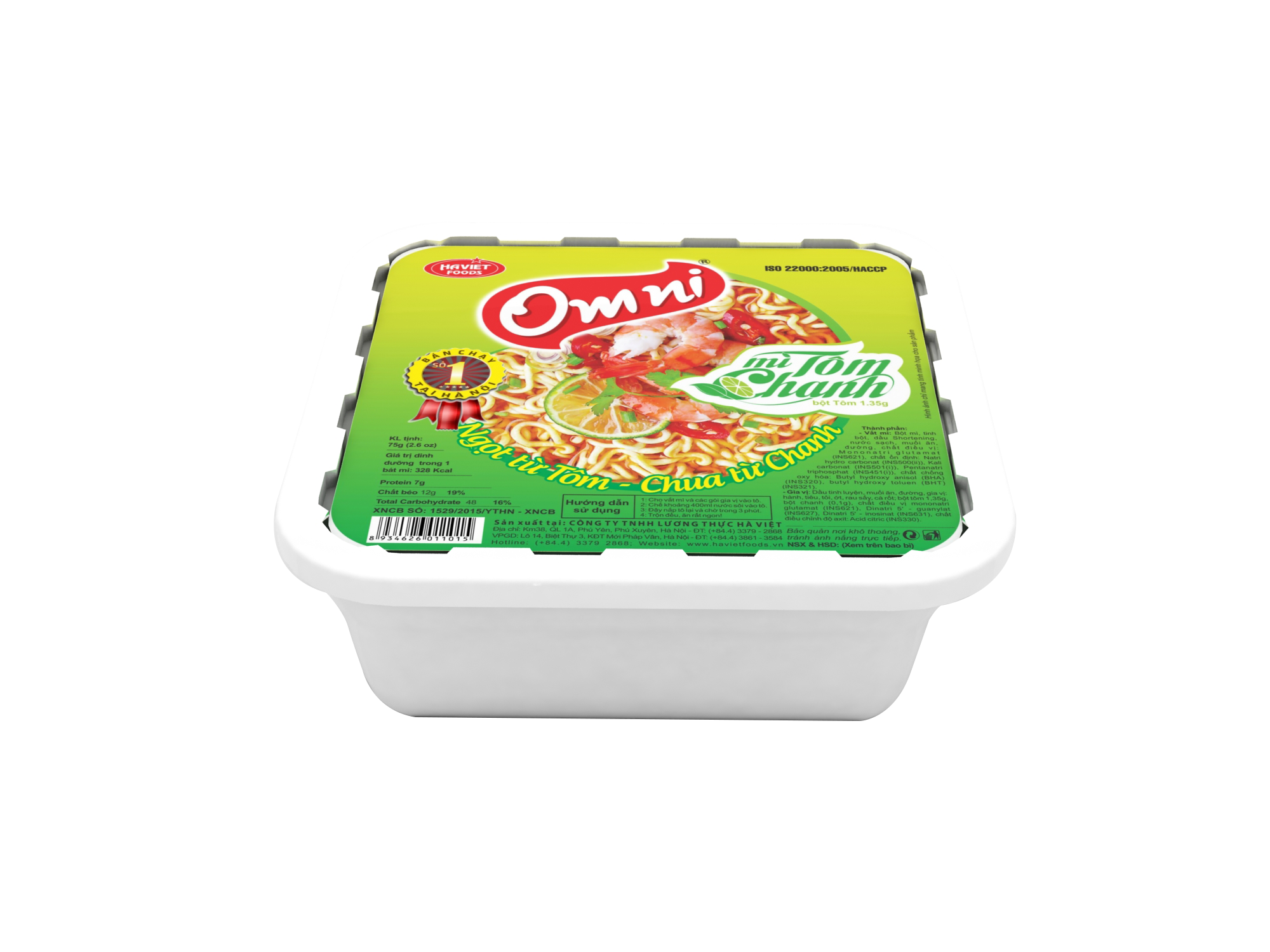 - Gia Vị: Dầu tinh luyện, muối ăn, đường, gia vị: hành, tiêu, tỏi, ớt, rau sấy, cà rốt; bột tôm 1.35g, bột chanh (0.1g), chất điều vị, chất điều chỉnh độ axít.