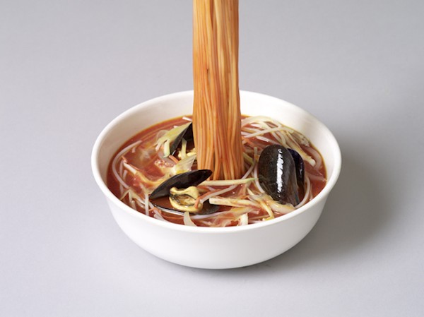 Nghệ sĩ Seung Yul Oh tới từ Hàn Quốc đã tạo ra những tác phẩm "mì gói" vô cùng ngoạn mục. Những tác phẩm này được làm từ sử dụng nhựa tổng hợp và còn được tặng kèm một đôi đũa ở độ cao khoảng 3 mét rưỡi với sợi mì lơ lửng được "kéo ra" từ trong tô. Chúng trông thực đến mức có lẽ ai xem xong bức ảnh có lẽ đều phải đi tìm... mì gói.